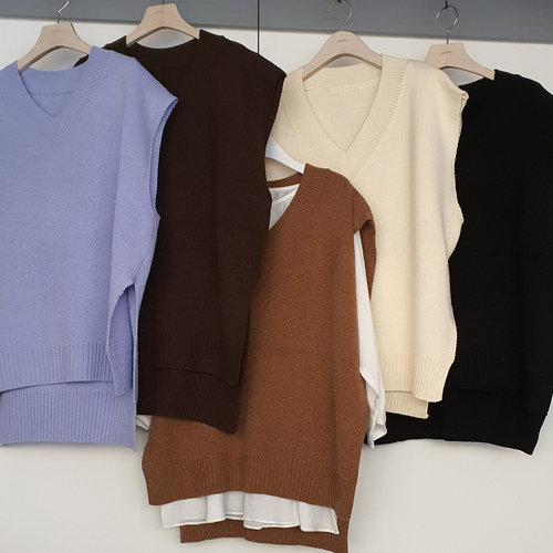 가을 빅사이즈여성의류 포니 옆트임 무지 베스트 TGE725 브이넥조끼