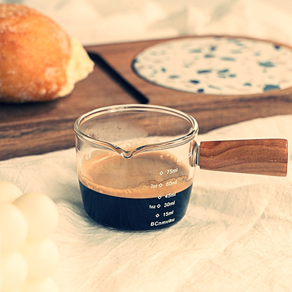 고급형 우드 손잡이 에스프레소 샷잔 유리 글라스 홈카페 커피 머신 핸드 융 드립 더치