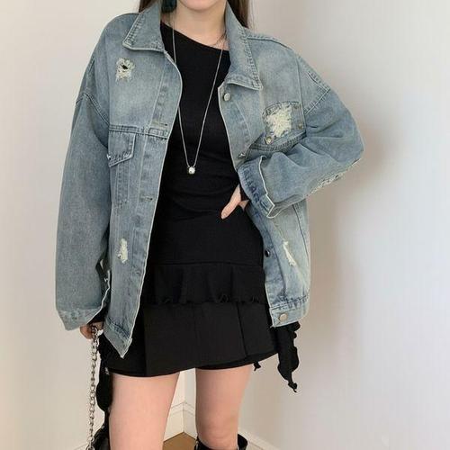 [신상오픈런]여성용 빈티지 스타일 오버핏 청 재킷