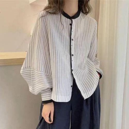 [BZGHH45L_49]헨리넥 빅 스트라이프 셔츠 얇은 면 셔츠