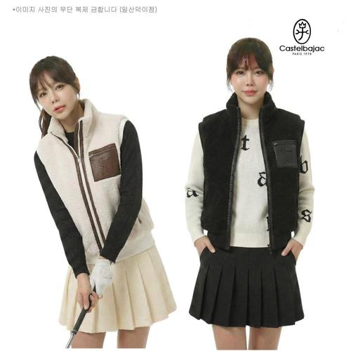 [까스텔바작]까스텔바작 여성 골프 플리츠 방풍안감 뽀글이 가죽배색 조끼 BGEWVT-802 CA3830319