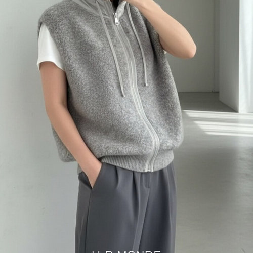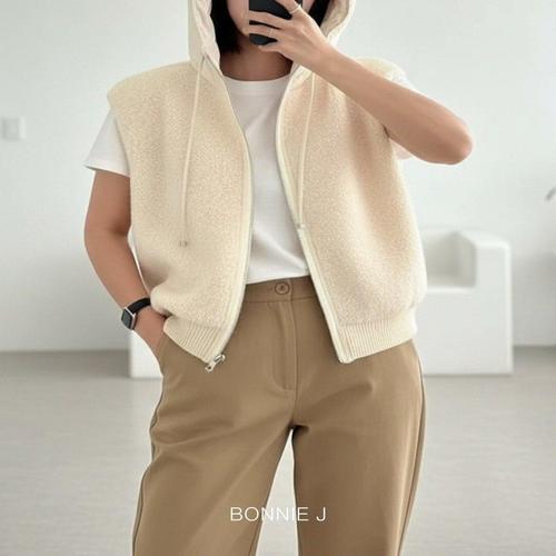 보니제이 / 뽀글이 경량 니트 베스트 여성 겨울 집업 후드 조끼