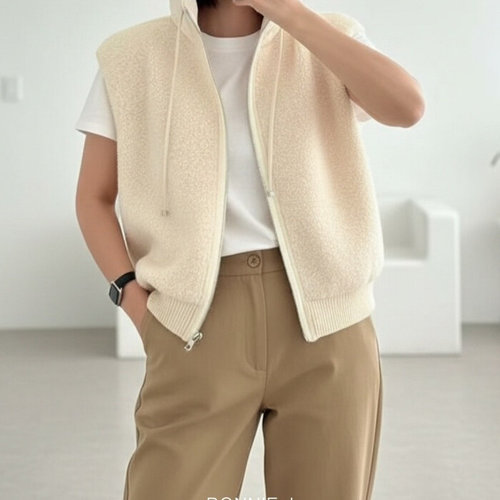 [보니제이]뽀글이 경량 니트 베스트 여성 겨울 집업 후드 조끼