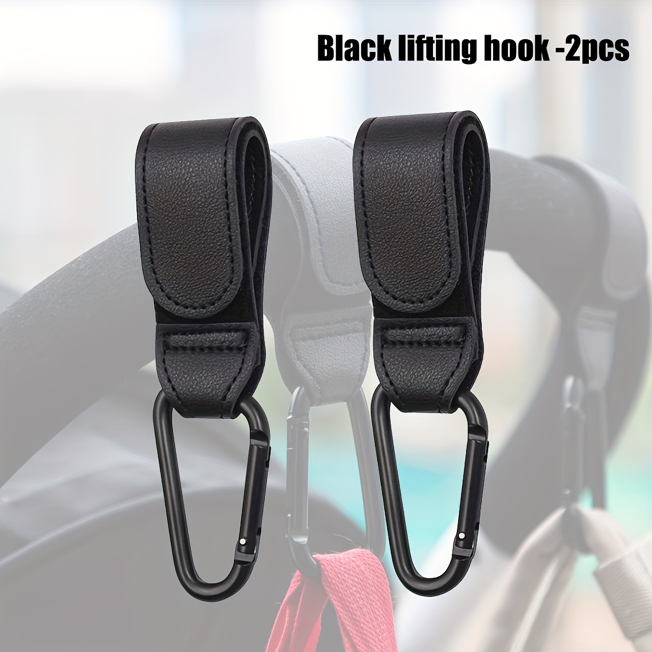 TEMU 2개 세트 PU 가죽 유모차 가방 후크, 기저귀 가방, 자전거, 쇼핑 카트, 휠체어 및 차량 뒷좌석용 조절 가능한 금속 클립 후크 - 휴대 가능하고 내구성이 뛰어나며 다양한 색상(검정 & 갈색)으로 사용할 수 있는 액세서리 - 야외 활동 및 일상 업무에 이상적|휴대용유모차