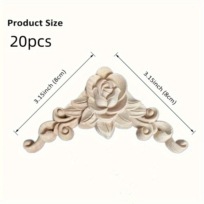 TEMU 6/20 장식용 나무 장미 코너 몰딩 3.15 X 3.15 인치 DIY 미도장 나무 코너 몰딩 가구 및 옷장 장식용 - 축제