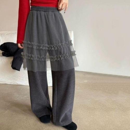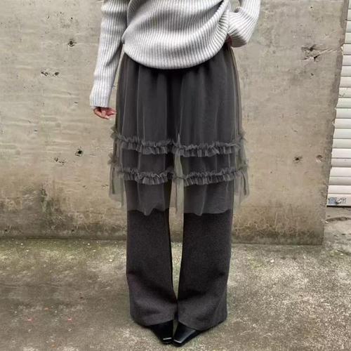 [신상오픈런]여성용 따뜻한 겨울 기모 레이어드 프릴 망사 와이드 팬츠