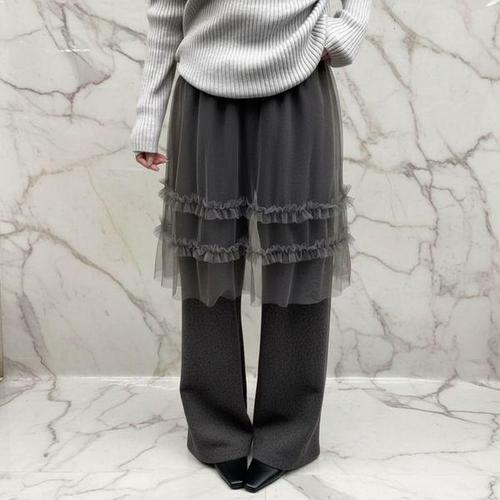 [옷자락] 여자 따뜻한 겨울 기모 레이어드 프릴 망사 밴딩 와이드 팬츠