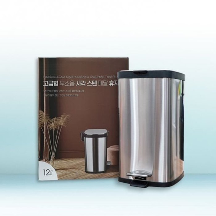 스텐 페달 휴지통 사각 무소음 12L 쓰레기통 분리수거