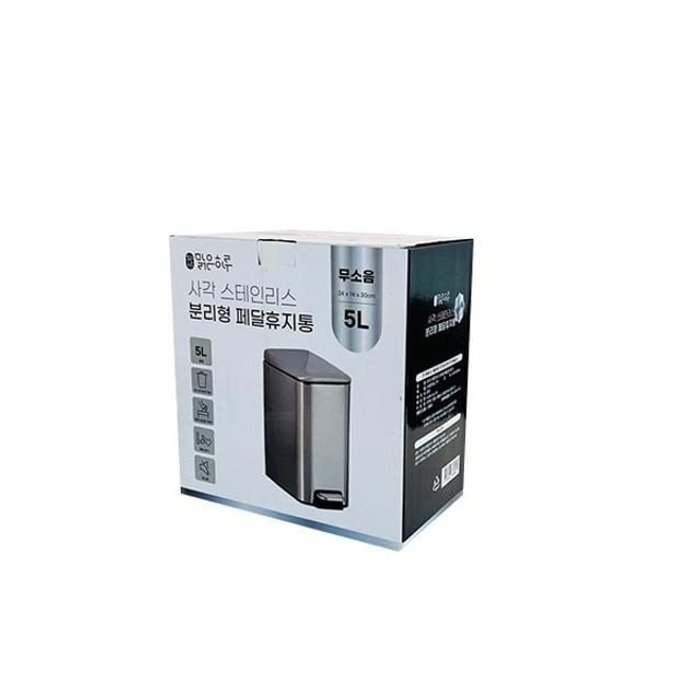 엄지척 무소음 스텐 분리형 페달휴지통(사각)5L