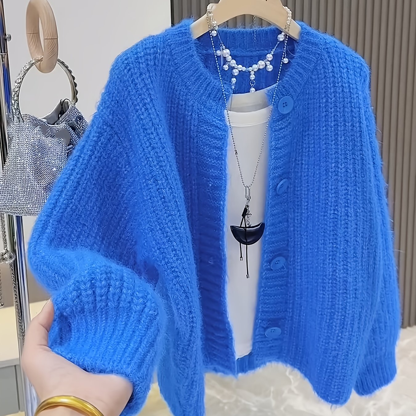 TEMU ZJ0907027 우아하고 세련된 여성용 두꺼운 루즈핏 캐주얼 다용도 가을 겨울 가디건