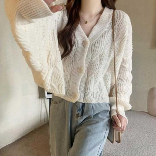 [기타브랜드]크롭 얇은 브이넥 펀칭 가디건 4color 여성 니트 간절기 아우터 사무실
