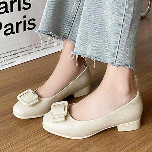 [신난다슈]여성 구두 펌프스 힐 4cm 여자 페니 로퍼 힐 단화 발편한 통굽 사각코 CA252418