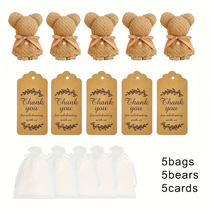 TEMU 15개 귀여운 곰돌이 타월 선물 세트 (투명 오간자 백 & 축하 카드 포함) - 결혼식, 생일, 어버이날, 발렌타인데이, 봄/여름 파티에 완벽한 선물