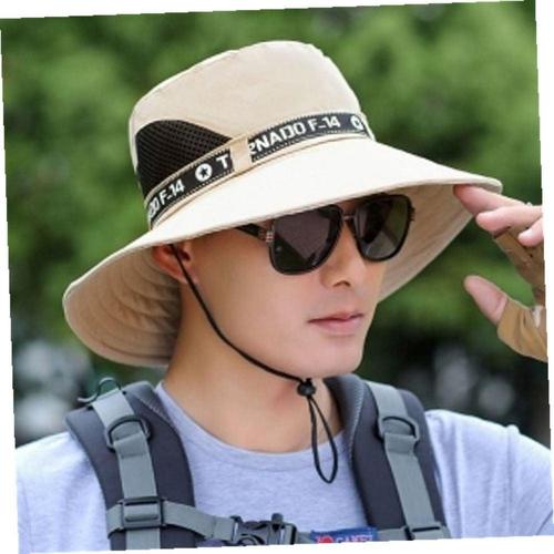 여름 남성 버킷햇 야외 자외선 차단 넓은 챙 파나마 사파리 사냥 하이킹 모자 메쉬 벙거지 모자 비치 자외선 차단 캡