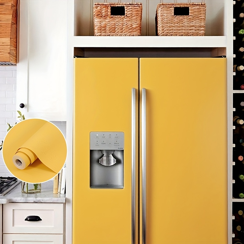 TEMU 1롤 노란색 냉장고 벽지, 진녹색 미니 냉장고 랩 비닐, 오프화이트 주방 스티커, 연보라 가전 필름, 자체 접착 벽지, 장식용 냉장고 데칼, 붙였다 떼는 벽지
