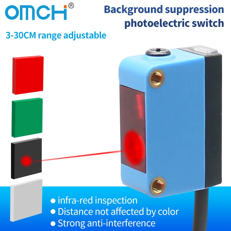OMCH 배경 억제 광전 센서 스위치 HG-30B 조정 가능한 거리 3-30cm PNP NPN 4선