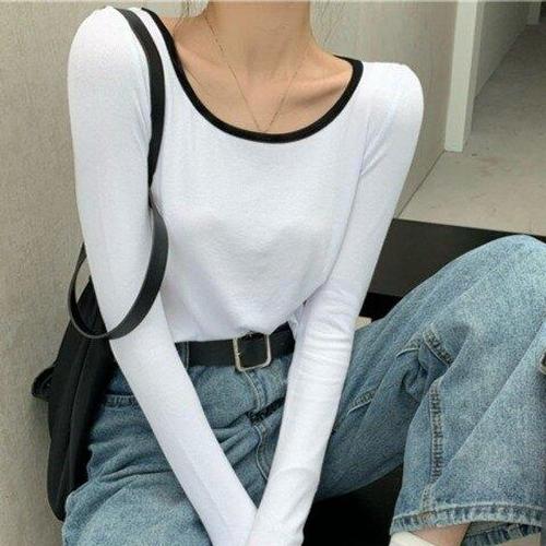 [페리엠]배색 라운드넥 샐리긴팔티셔츠