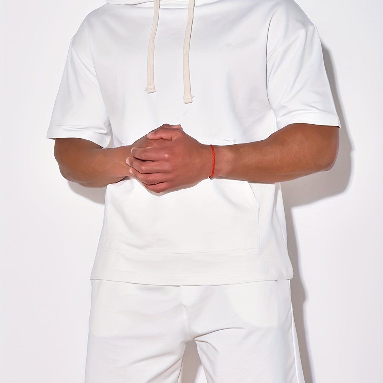 TEMU 남성 2Pcs 트렌디한 옷 캐주얼 루즈 반팔 후드 티셔츠 상의 & 편안한 스포츠 조절 끈 반바지 봄 여름 운동 남성 의류