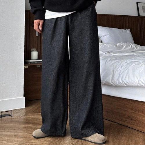 [시크블랙]턴라미 와이드 생지 데님 기모 팬츠