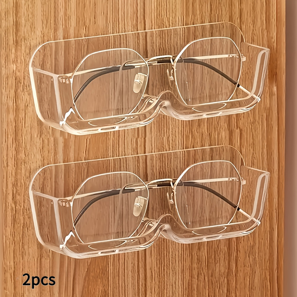 TEMU 2개 투명 플라스틱 벽걸이형 안경 정리대 (수납 선반 & 프레임 포함) - 공간 절약형 욕실, 가정, 사무실용, 장식 수납 랙, 디자인, 튼튼한 구조, 가정용 정리 용품