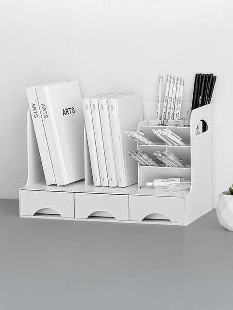 리템 콤보 책꽂이 화이트 일체형 3단서랍 연필꽂이 서류꽂이 책진열대 데스크멀티박스