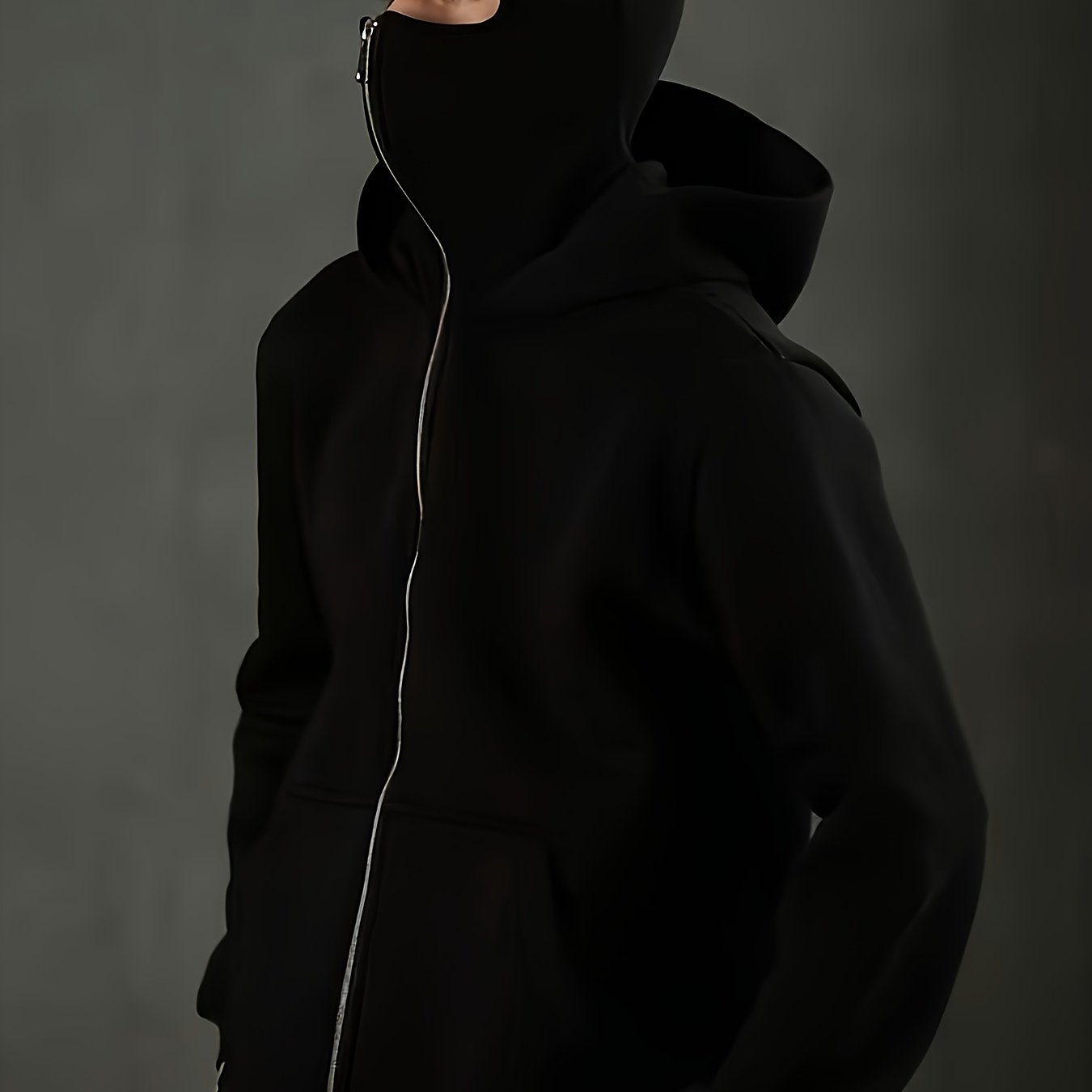 TEMU 남성 캐주얼 솔리드 블랙 후드티 - 긴소매 지퍼 포켓, 봄, 가을, 겨울용, 캐주얼 재킷 | 후드티 | 지퍼업 후드티