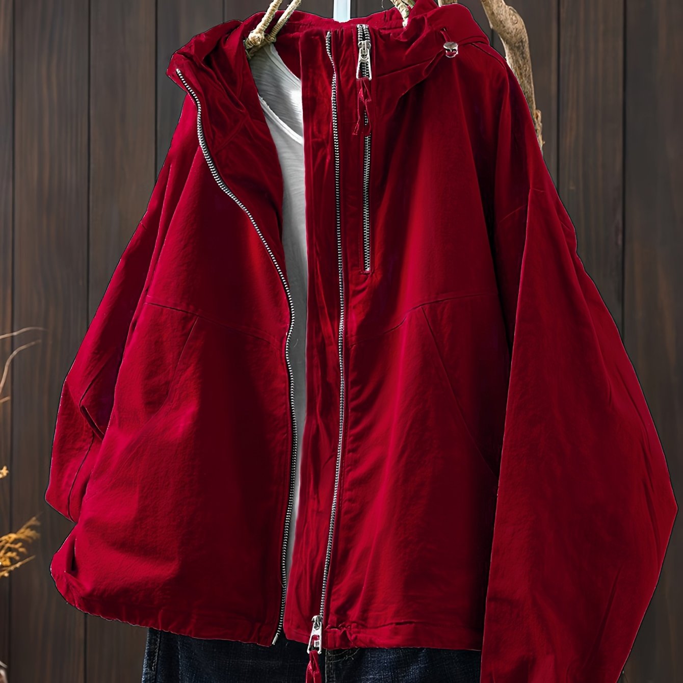 TEMU 플러스 사이즈 - 플러스 사이즈 - 플러스 사이즈 - 플러스 사이즈 - 플러스 사이즈 - 플러스 사이즈 - 여성 플러스 사이즈 후드 재킷 - 긴소매, 지퍼업, 단색, 캐주얼 스타일, 신축성 없는 원단, 가을/겨울에 적합, 캐주얼 웨어 재킷 | 후드