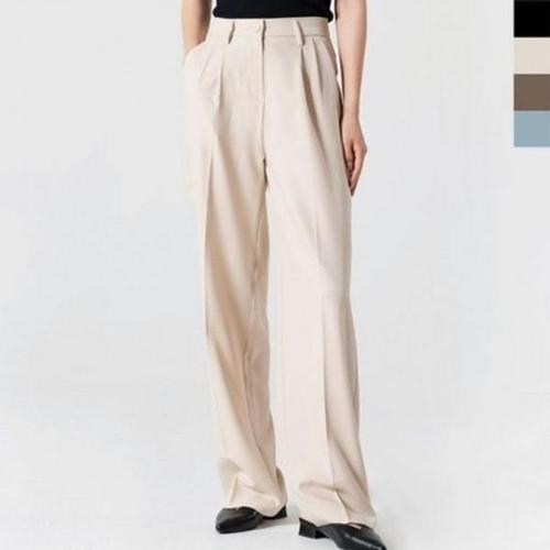 타임퓨어 여성 정장 바지 데일리 캐주얼 통바지 스판 좋은 핀턱 밴딩 일자 와이드 팬츠 사계절 긴바지 슬림 스트레이트 핏
