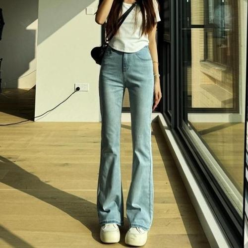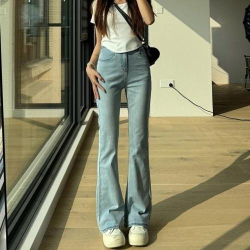 뱅뱅 여성용 세미 플레어핏 스판 데님 긴바지
