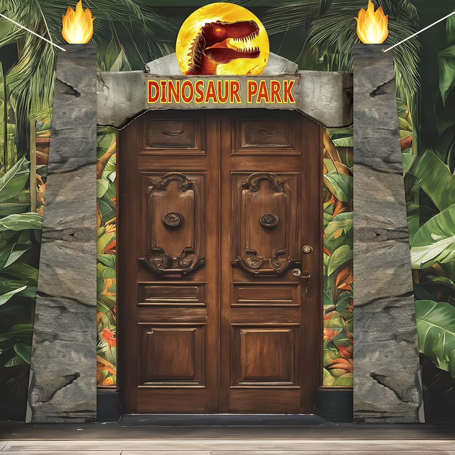 TEMU 디노 사자 생일 파티 포치 배너 - 디노 파크' 표시, 불꽃 & 잎 디자인으로 남녀 모두에게 사진 부스 속장, 디노 테마 이벤트 용품, 디노 방 데코