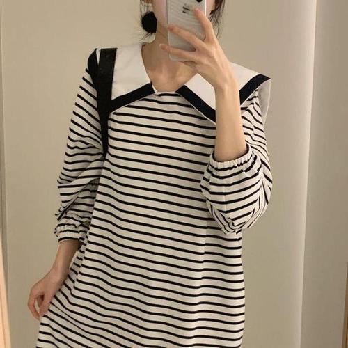 [다잇템]여자 SS 끈 클래식 세일러카라 줄무늬 니트