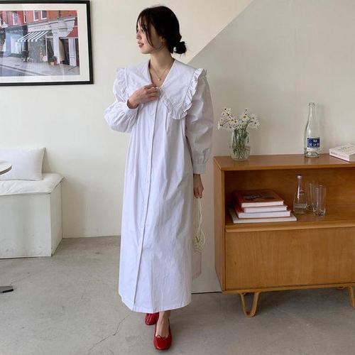 [다잇템]여자 프릴 세일러카라 에이라인 롱원피스