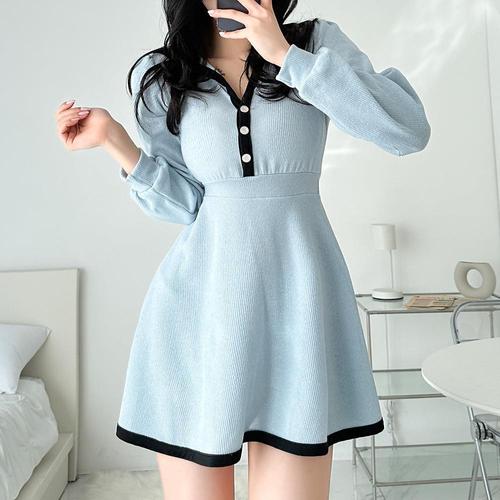 [옷자락]여자 봄 나들이 세일러카라 플레어 미니원피스