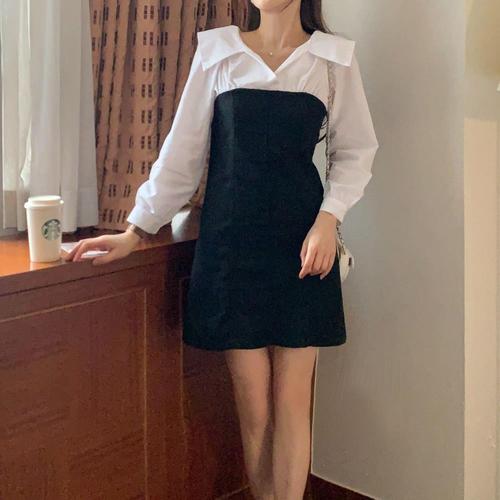 여자 칵테일 세일러카라 랩셔츠 쁘띠 원피스