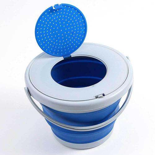 낚시 캠핑 하이킹 세차 등을 위한 초경량 야외 분지통 업그레이드된 손잡이 5갤런 휴대용 접이식 버킷(블루