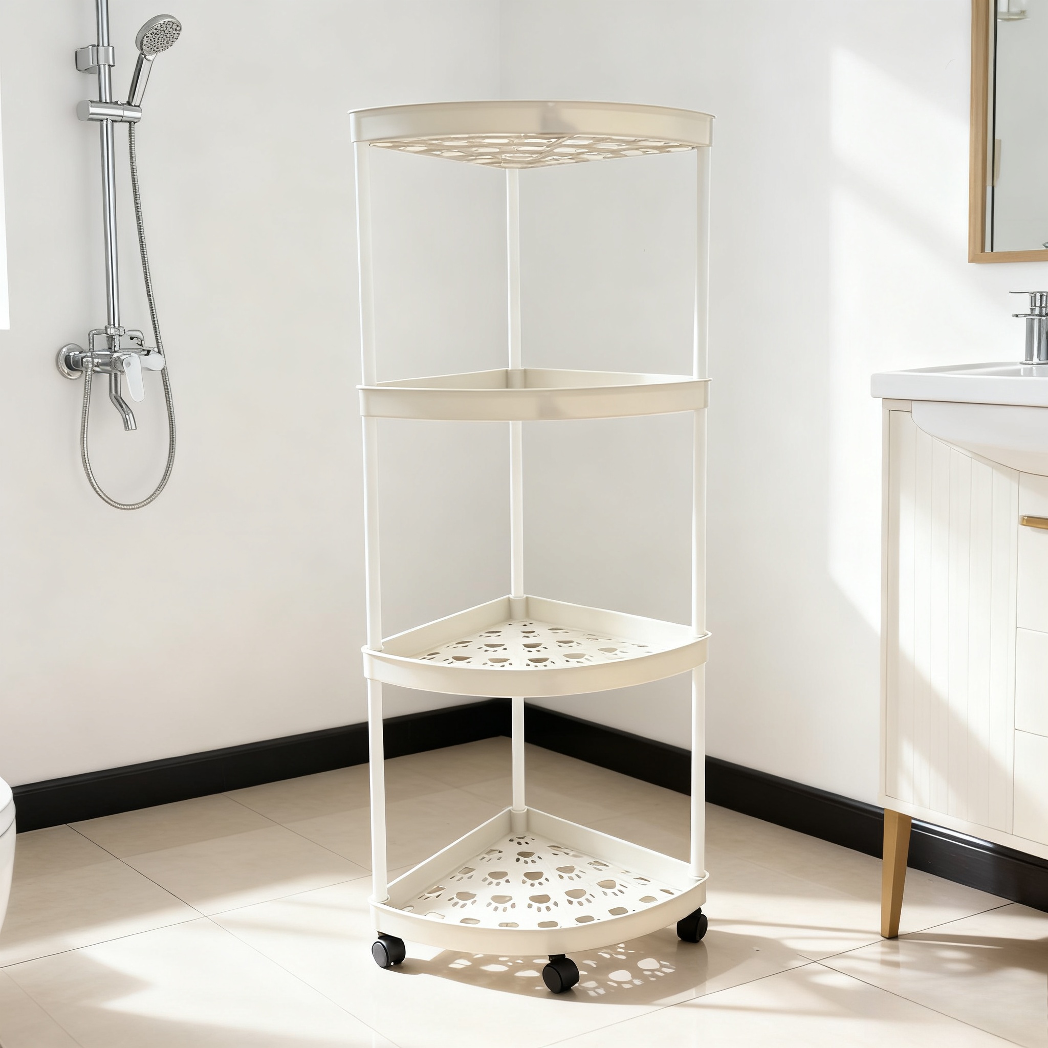 TEMU 1개 모던 3단/4단 코너 책장, 접이식 및 조립 필요, 욕실·주방·화장품·욕조용 다목적 수납 바구니