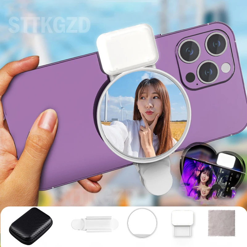STTKGZD 셀카 반사경 미러 휴대폰 보조광 키트 휴대용 미러 클립 보관 가방 휴대폰 후면 카메라