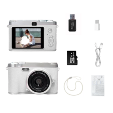 SMABAT 감성 디지털 카메라 듀얼 디지털 카메라 셀카 렌즈 내장 플래쉬 128G SD카드 포함, 화이트