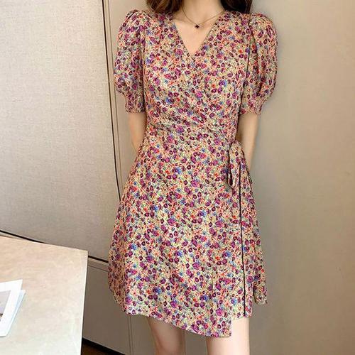 [모노무드]모노무드 별도표기 랩원피스 인기 플라워 허리스트링 어깨셔링 감성 퍼프