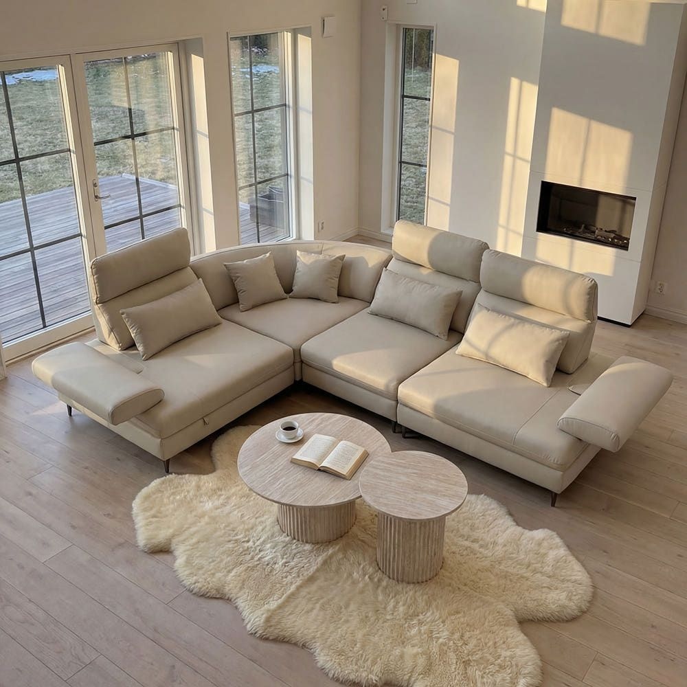 웰퍼니쳐 토르 가죽 소파 4인용+콘솔+스툴