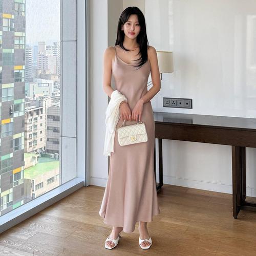 여성 끈나시 스트링 실키 롱원피스 TDN-0163