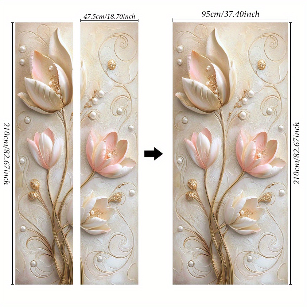 TEMU 생동감 있는 튤립 & 진주 붙이기 문 데칼 - 현대적인 추상 꽃 벽 스티커, 침실 & 거실용, 쉬운 제거 홈 데코