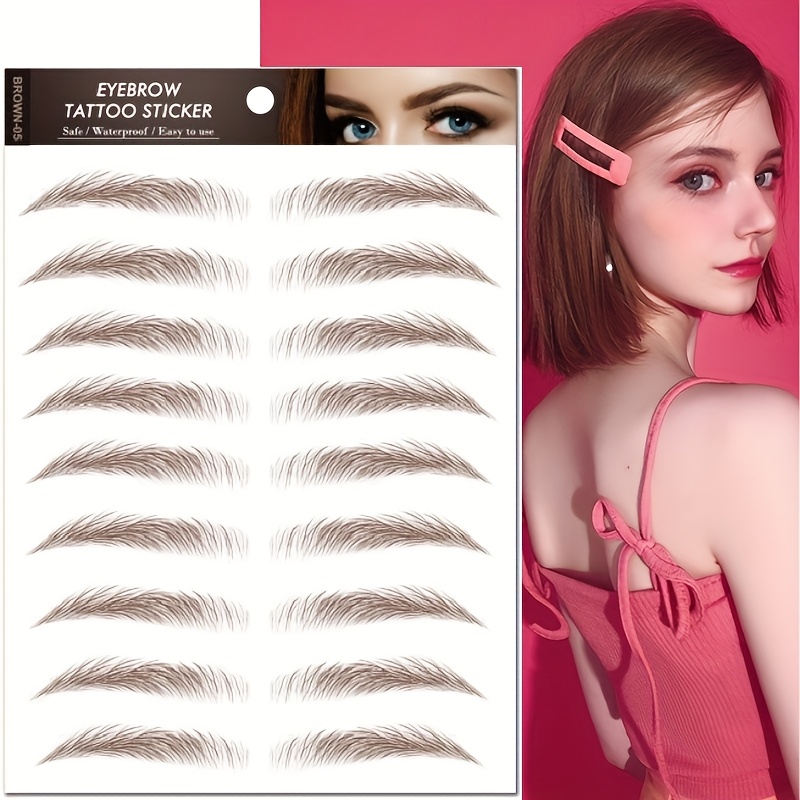 TEMU 4개입 리얼 브라운 눈썹 타투 스티커 - 방수 및 땀 방지, 자연스러운 눈썹, 간편한 부착, 일상 및 특별한 행사에 적합한 오래 지속되는 홀드 - 할로윈, 크리스마스, 생일 선물로 완벽 - 모든 밝은 피부톤에 적합|타투스티커