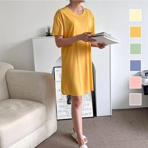[엄지척]홈웨어 실내 편한 여성 밑단 트임 롱 반팔 원피스_19871798_667501