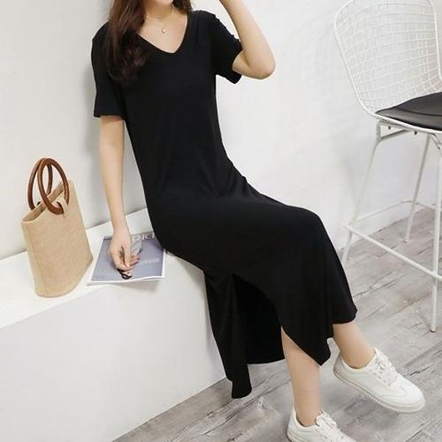 [엄지척]여성 홈웨어 간편 외출 밑단 트임 브이넥 원피스_19911466_667501