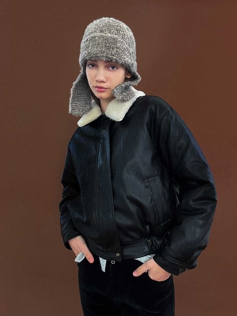 [스튜디오 솔트] 포우 레더 시어링 점퍼_블랙