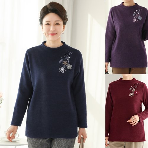 [엄마옷 로즈맘] 차움꽃장식반폴라기모티셔츠