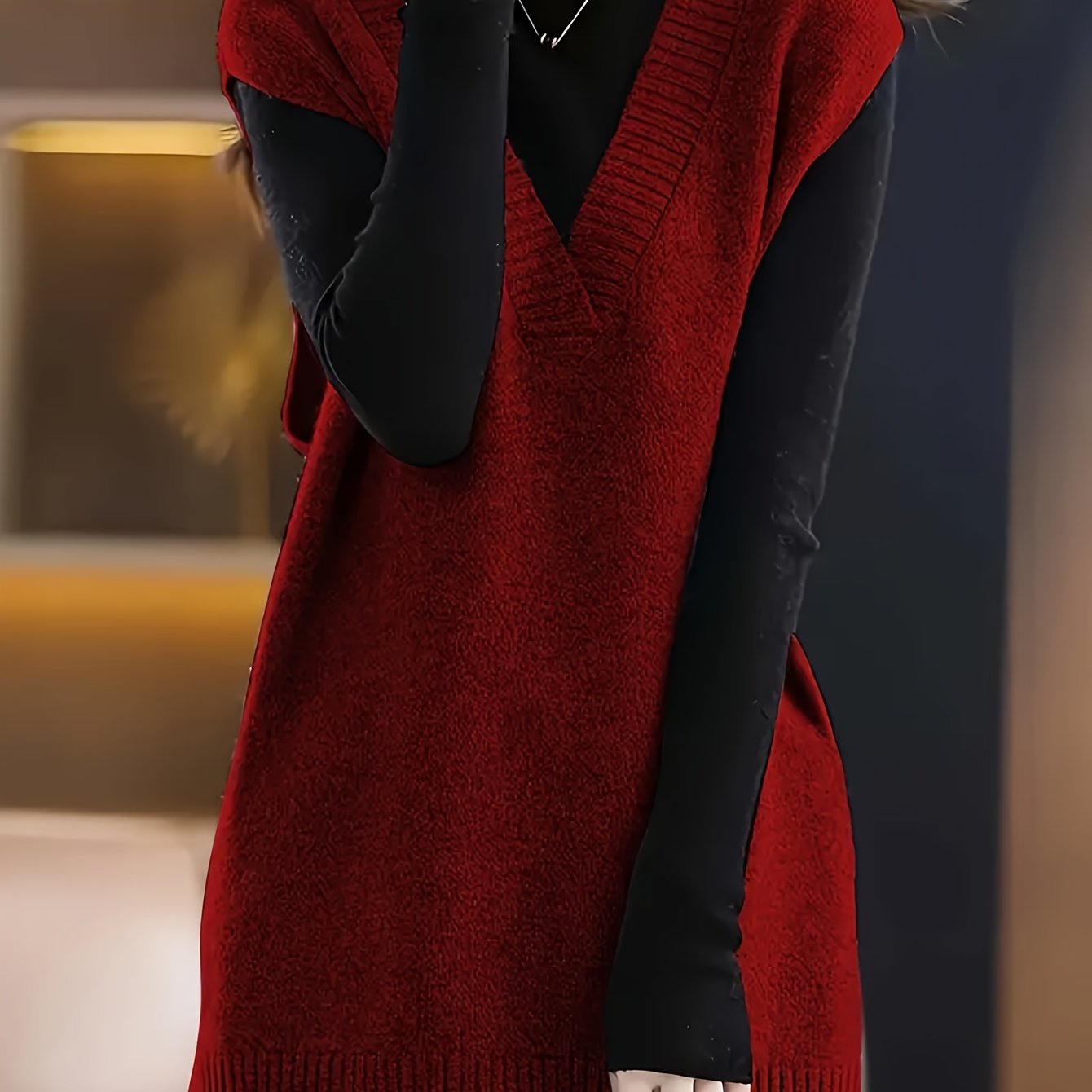 TEMU 플러스 사이즈 - 플러스 사이즈 - 색상의 우아하고 캐주얼한 여성용 조끼. V넥, 사이드 슬릿, 올 시즌에 적합한 미드 레인지 디자인 특징.