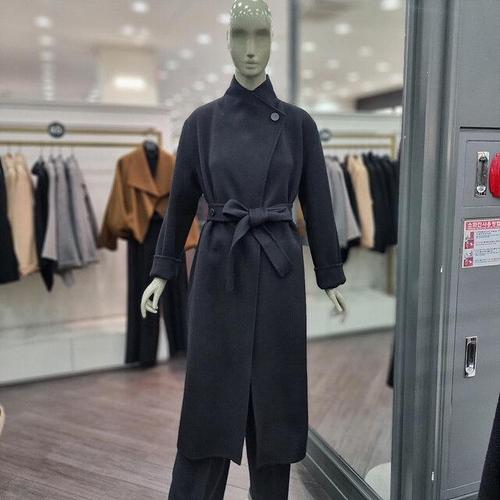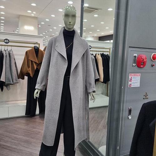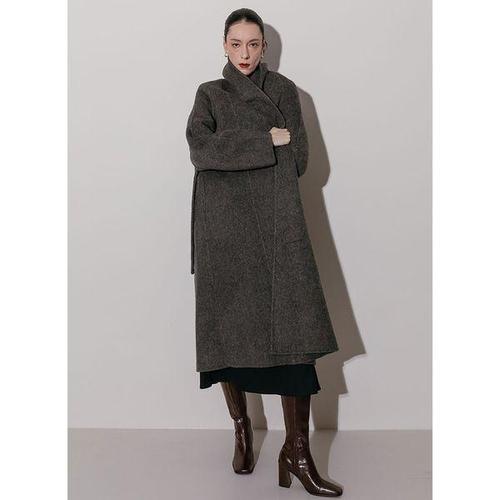 /옷자락 여자 울코트 벨티드 숄카라 겨울 롱코트