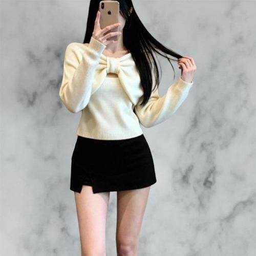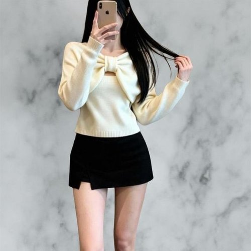 [다잇템]여성 탱크 나시와 숏가디건 스웨터 리본 세트
